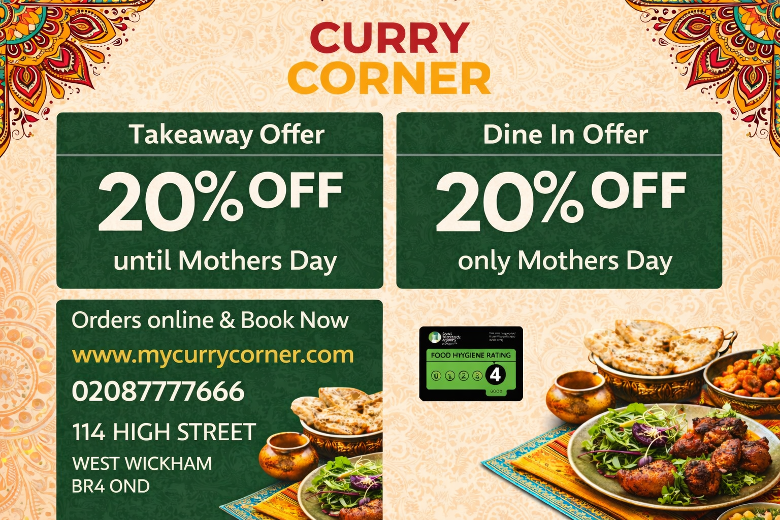 We are proud to present the finest chef in the culinary world. The management takes great care to ensure that our diners are happy with the food. We pride ourselves on our customer service and quality of food. CURRY CORNER uses only the very best ingredients to prepare your meal. In addition to the all time favourite dishes, we also offer our own specialities creating unique meals for you to enjoy. CURRY CORNER is an Authentic Cuisine in WEST WICKHAM, tempted by an unrivaled range of Authentic & Imaginative traditional and fusion dishes. Our approach to healthy cooking is that we try to minimize additives in our dishes. So enjoy your meal & have a memorable experience!!